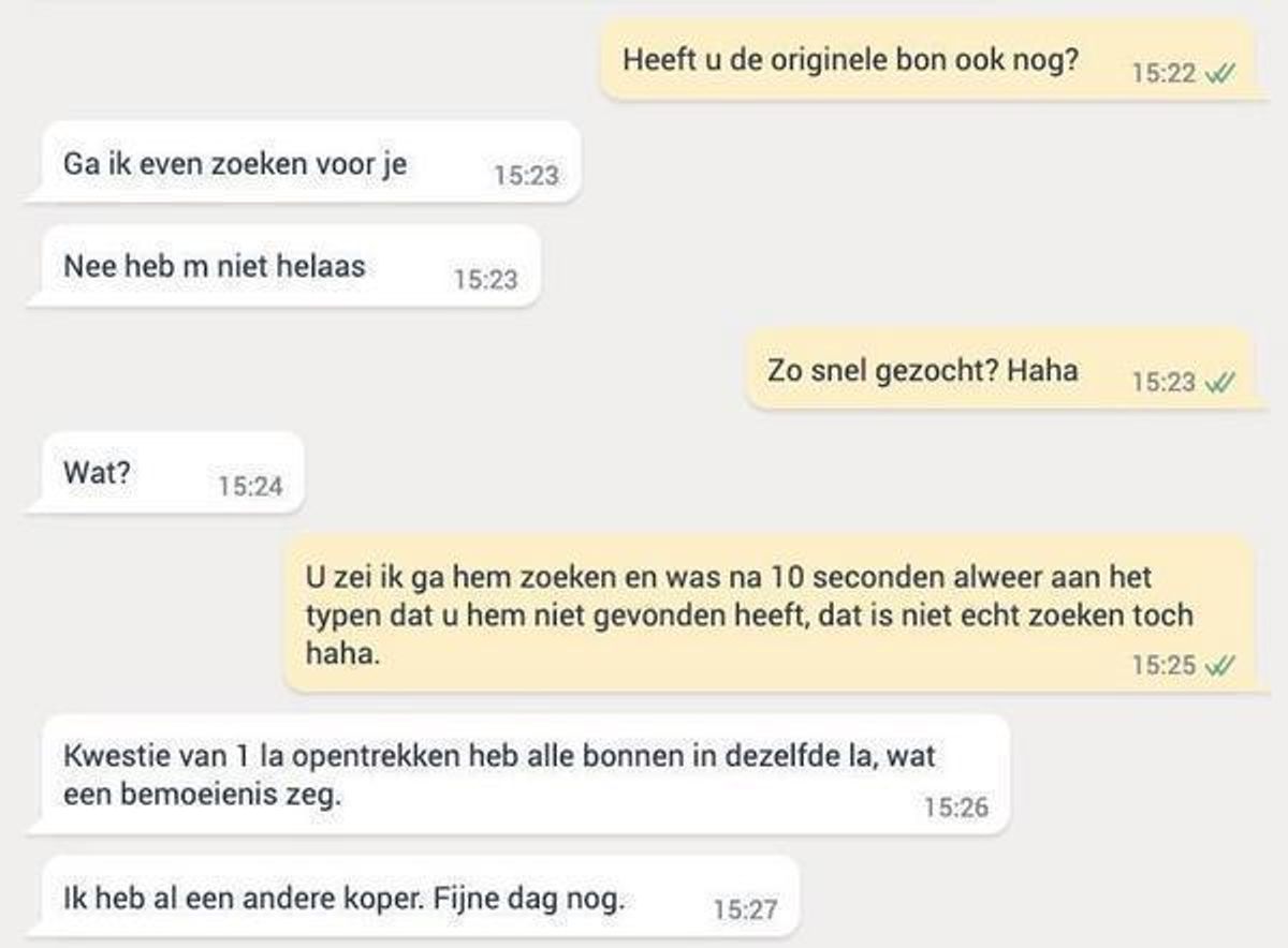 Er zijn ook diegene die je een bericht sturen met: “Is het nog beschikbaar?” en zodra je antwoordt met “Ja,” krijg je niks meer terug.
