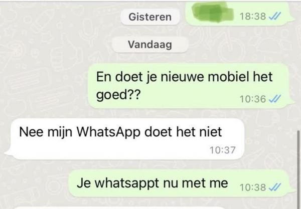 Je vader stuurt je dan berichtjes zoals “Ik ben aan het kijken naar iets voor jou, wil je dat ik het koop?” Waarop jij antwoordt met “Nee, ik ben goed,” en hij daarop weer reageert met “Nou, ik heb het toch maar gekocht.”