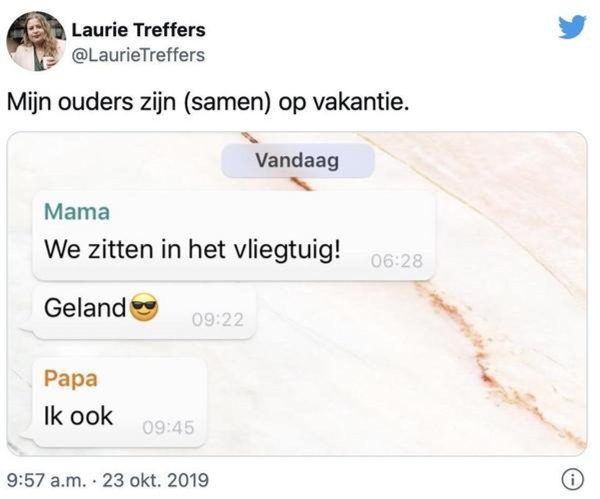 Of de typische “Ben je al op vakantie geweest?” Waarop je, nadat je een kort antwoord hebt gestuurd, meteen een antwoord krijgt met: “Nou, als je ergens naartoe gaat, laat het me weten, dan zoek ik wel wat voor je.”