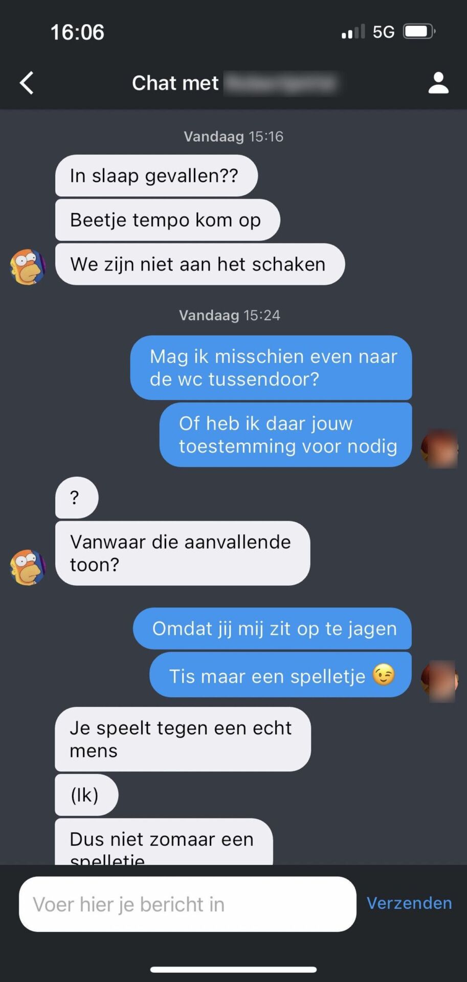 Een andere screenshot toont een speler die het woord “WAAR” plaatst, maar de tegenstander legt uit dat dit in de context van het spel helemaal niet zo logisch is. Toch is het grappig dat iemand probeert zo’n simpel woord neer te zetten voor zoveel mogelijk punten.