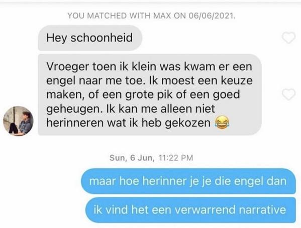 De eerste man in onze lijst begint zijn gesprek met de legendarische zin: “Hé, ben je echt?” Wat bedoelt hij? Is hij gewoon nieuwsgierig of probeert hij grappig te zijn? Hoe dan ook, het is niet de beste manier om een gesprek te beginnen.