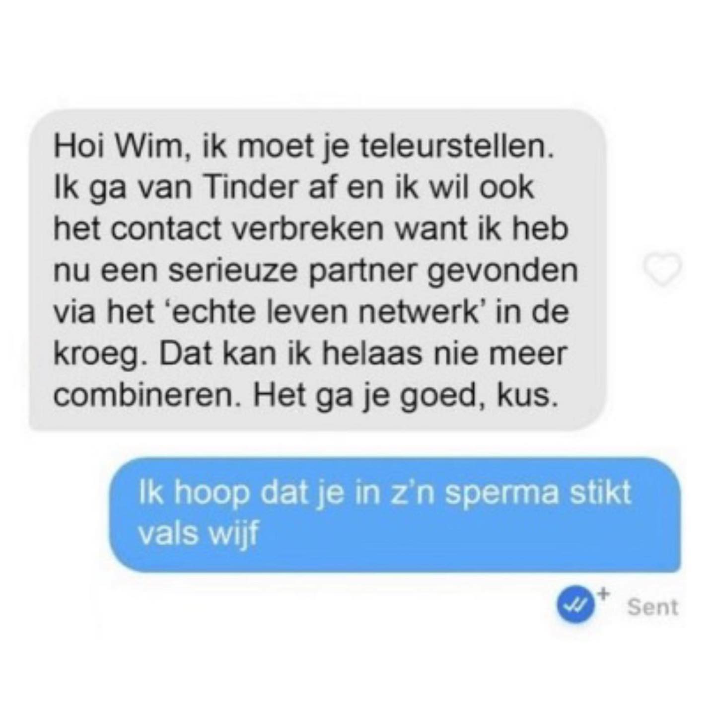 Man nummer drie is degene die meteen vraagt om een foto van haar in bikini. “Laten we eerst zien hoe je eruitziet, dan praten we verder.” Nou, dat is niet echt de manier om het ijs te breken, vriend.