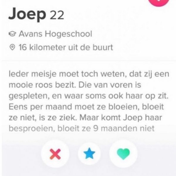 Dit doet duidelijk geen recht aan het doel van Tinder, wat is om een gesprek te starten en elkaar beter te leren kennen. Niemand wil meteen buiten de app gaan chatten……