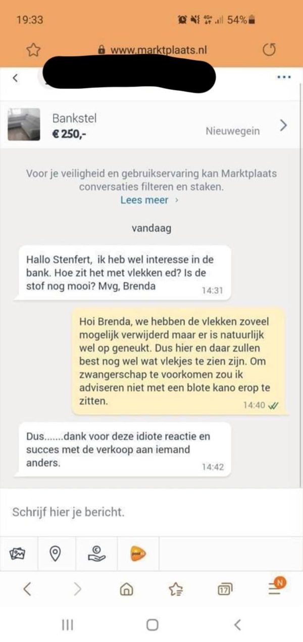 En dan zijn er nog de mensen die geen idee hebben hoe je een goede foto maakt van wat ze verkopen. Het lijkt wel alsof ze alles in een donkere kamer hebben gefotografeerd, waarbij het niet meer duidelijk is wat ze nu precies aanbieden.