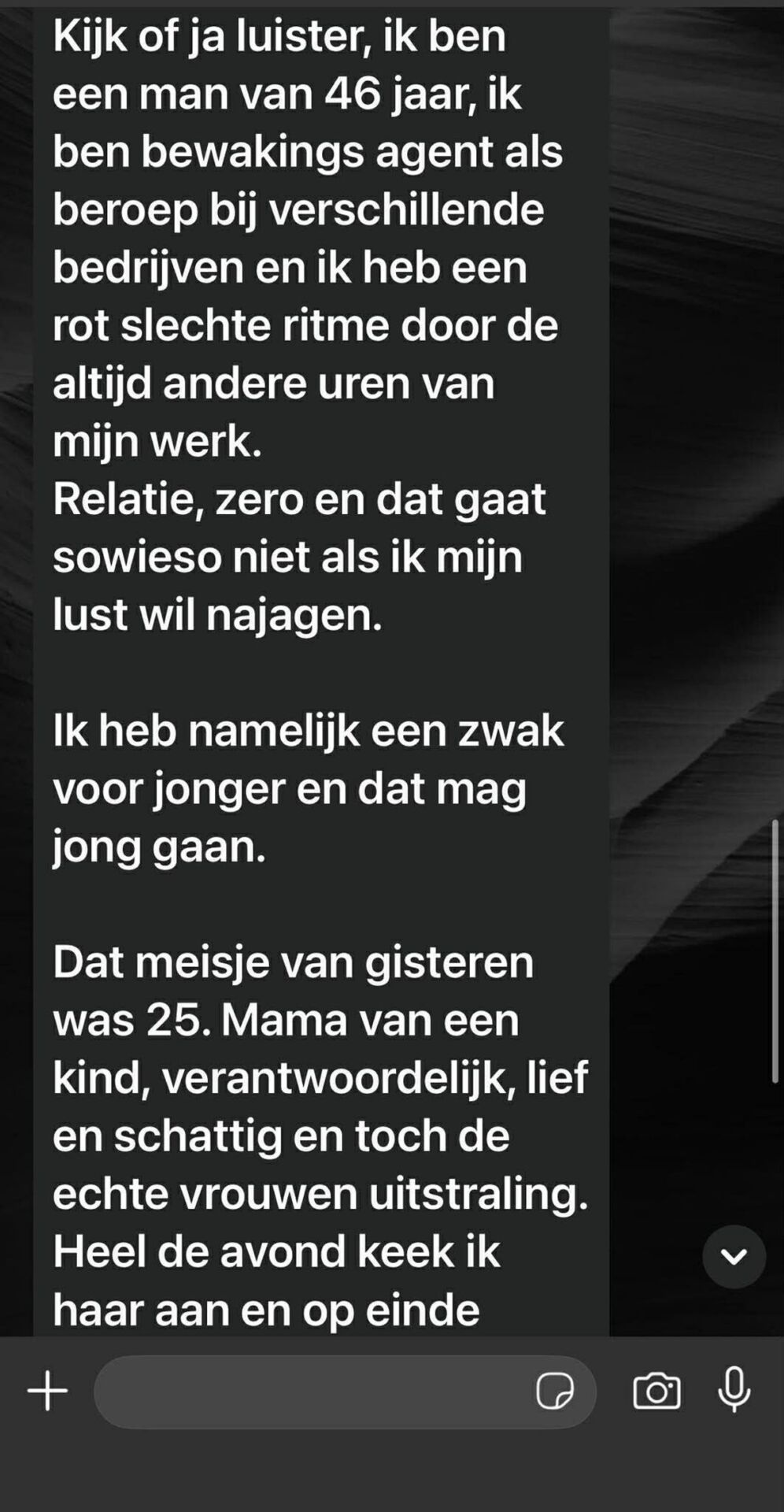 Ondanks zijn urenlange zoektocht, was er nog steeds geen reactie. Mark begon een beetje te twijfelen of dit de juiste manier was om haar te vinden. De opluchting die hij had gevoeld toen hij het nummer had gekregen, was langzaam aan het vervagen. Hij had waarschijnlijk beter kunnen vragen om haar volledige nummer, maar op dat moment was het gewoon te snel gegaan.