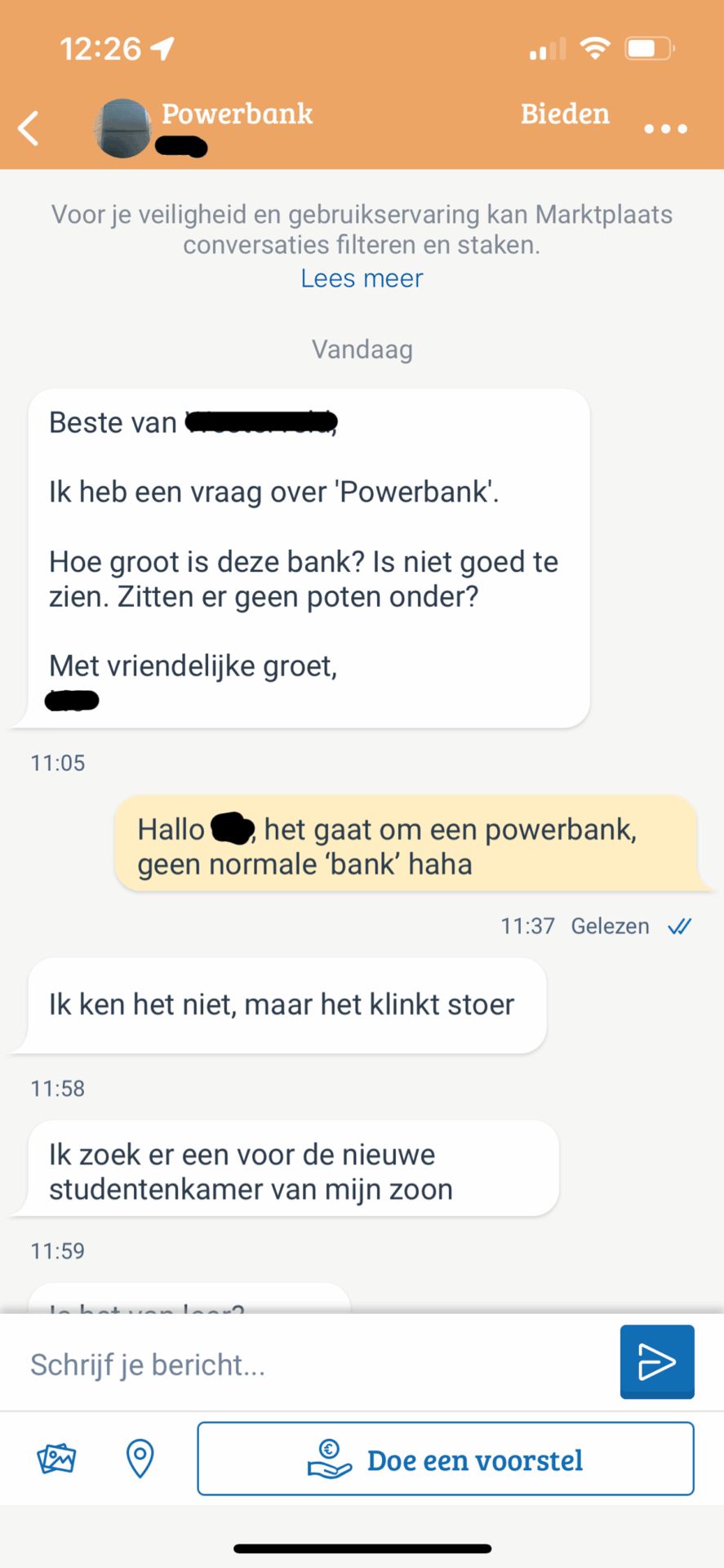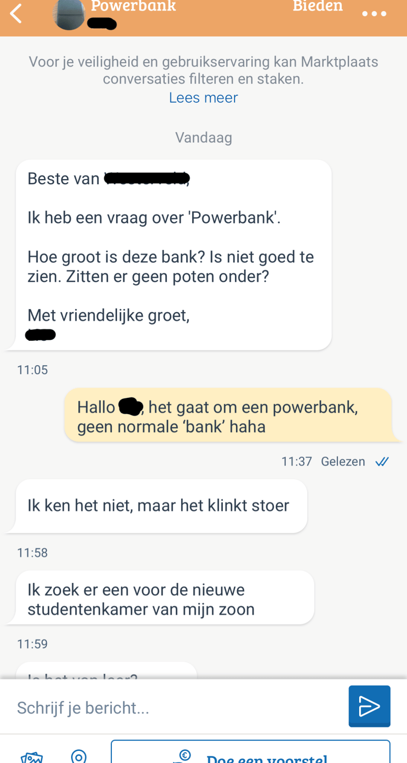 Niet zo slimme meneer informeert naar powerbank op Marktplaats