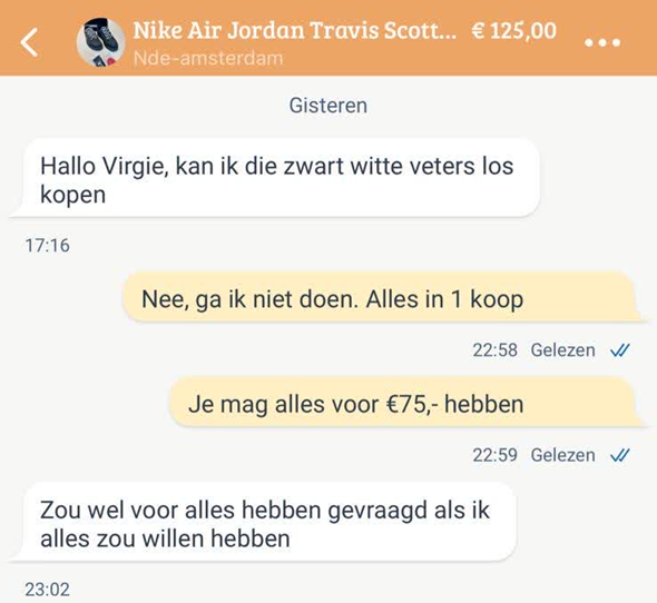 Marktplaats-gesprek over Nike-schoenen ontspoort in no-time, maar is net zo snel weer opgelost