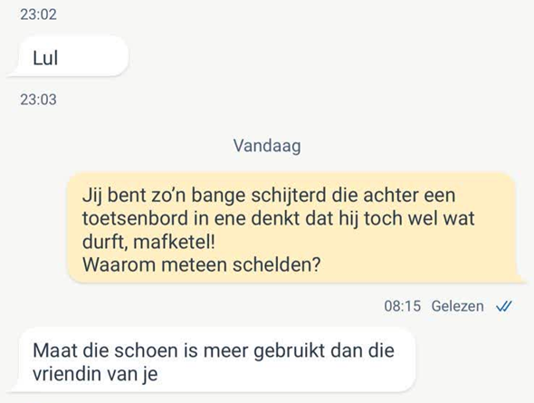 Echter, na enkele berichten ontspoort het gesprek plotseling. De koper lijkt geërgerd door een kleine miscommunicatie over de prijs en het aanbod. Het lijkt alsof de koper een ander paar schoenen verwachtte, en de woorden beginnen zich snel op te stapelen. De verkoper probeert kalm te blijven, maar de toon van de berichten wordt al snel iets scherper. …….