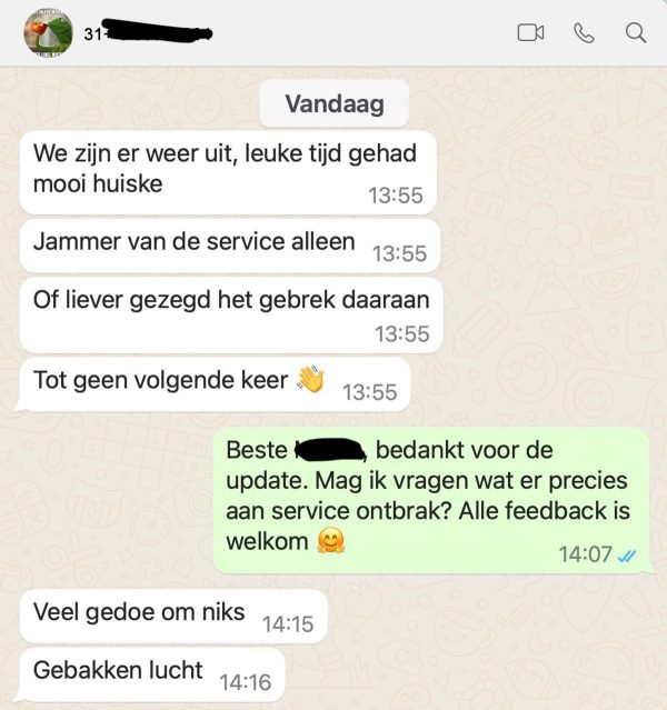 In dit geval is het belangrijk om zowel de verhuurder als de gasten bewust te maken van wat het verblijf daadwerkelijk inhoudt. Wanneer de gasten goed geïnformeerd worden over wat hen te wachten staat, kunnen teleurstellingen achteraf worden voorkomen. Misschien is het ook goed om na te denken over een manier om mensen meer bewust te maken van het echte avontuur dat ze aangaan, in plaats van ze simpelweg een bed, wat eten en een bad te bieden. Een stukje uitdaging hoort namelijk bij het avontuur in de natuur……