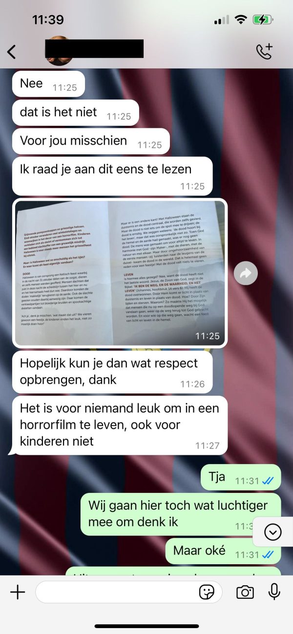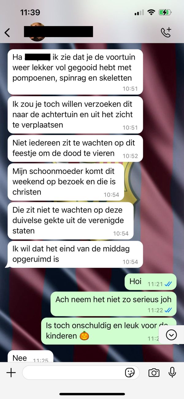 De buurman had zijn tuin vol gezet met pompoenen, spinnenwebben en skeletten. Het leek een standaard Halloween-opstelling, maar Frank had andere zorgen. Zijn gelovige schoonmoeder zou die week op bezoek komen, en hij wilde absoluut niet dat ze geconfronteerd zou worden met zulke “demonische” decoraties.