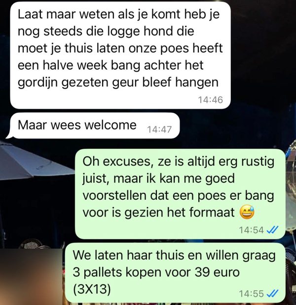 Maria vroeg zich af waarom iemand korting zou vragen op iets wat al voor een redelijke prijs werd aangeboden. Ze besloot het gesprek niet te snel af te breken en vroeg: “Wat bedoel je met korting?” De man antwoordde snel, maar zijn reactie was allesbehalve gebruikelijk. “Nou, ik geef korting als je me helpt met iets anders,” zei hij, en het leek alsof hij iets in gedachten had dat buiten het simpele verkopen van pallets lag.
