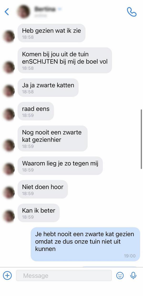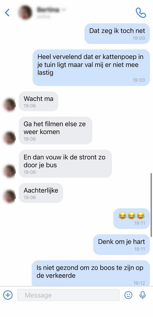 Met een boze blik op haar gezicht en een houding die allesbehalve vriendelijk was, klopte Annelies bij de buren aan. “Jullie katten poepen in mijn tuin!” riep ze meteen, nog voordat de deur helemaal open was. Haar stem trilde van frustratie.