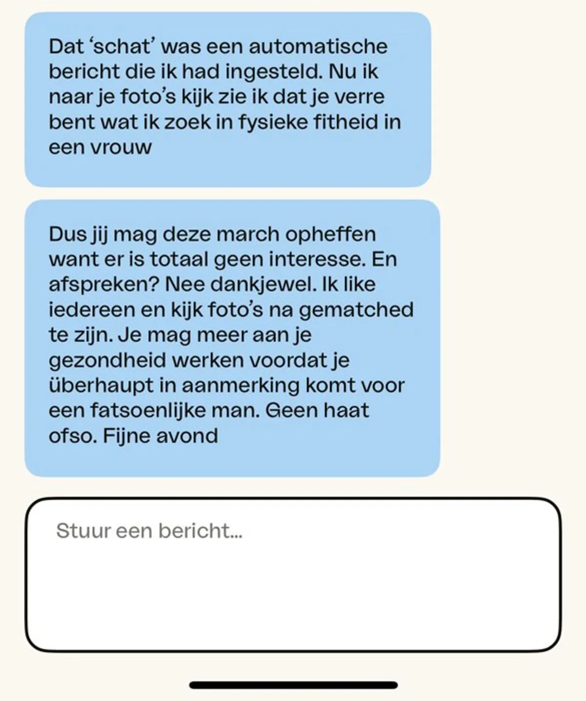Tot zijn verbazing reageert ze geïrriteerd. “Dat is mijn privéruimte, en ik kan daar toch wel roken als ik wil?” zegt ze met een korte adem. Het lijkt wel of ze haar eigen gedrag niet in hetzelfde licht ziet als waar ze zich zo druk over maakte.
