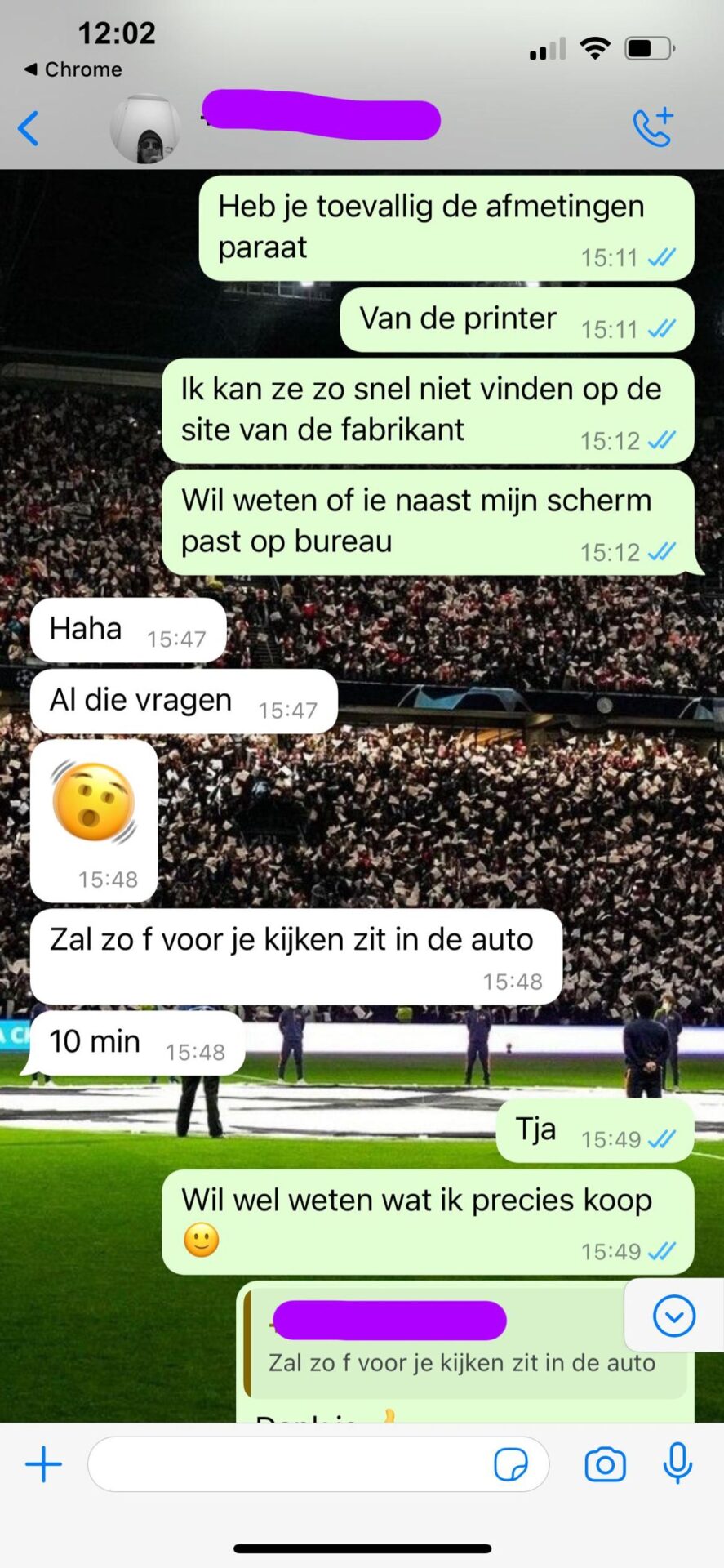 De verkoper van deze printer heeft geen rolmaat dus moet hij iets anders bedenken om de afmetingen door te sturen