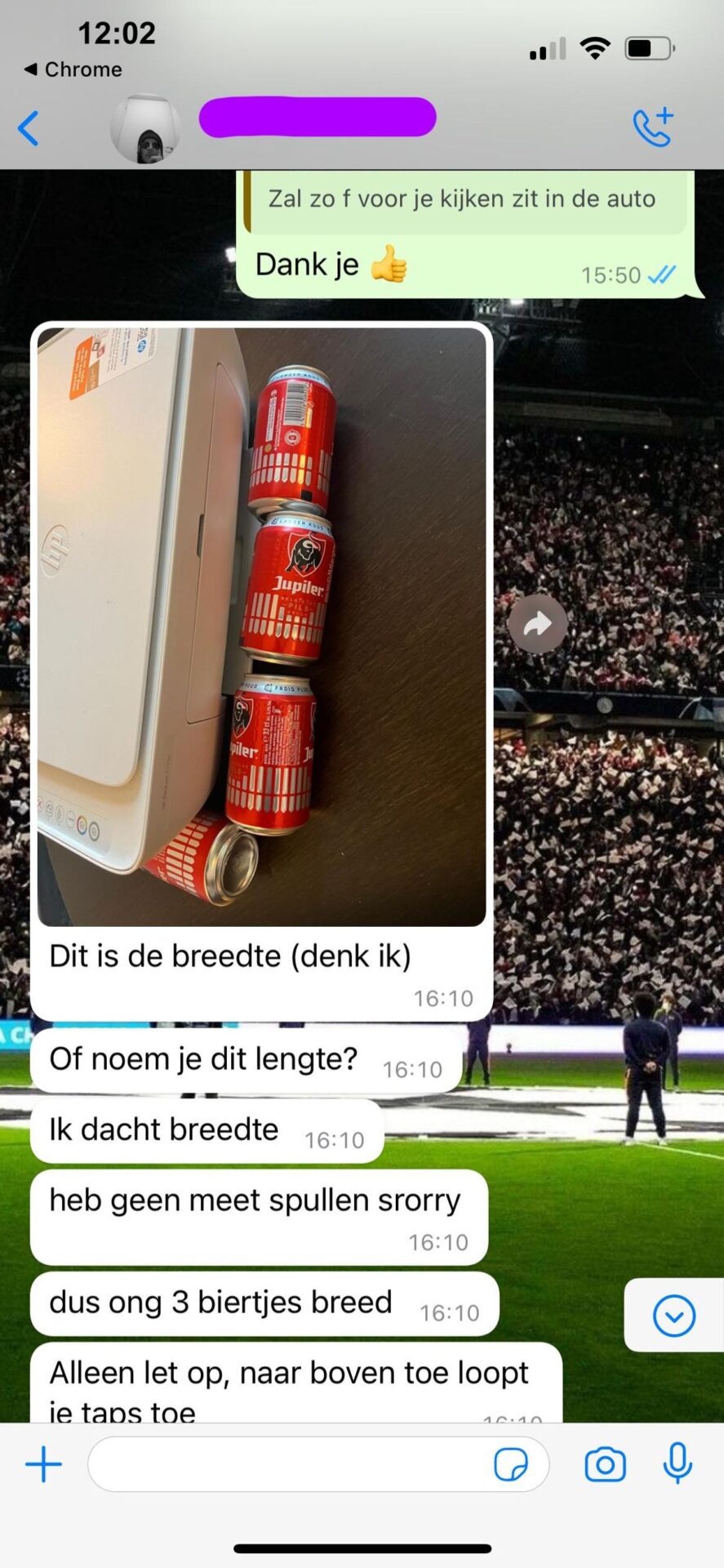 In plaats van simpelweg de afmetingen op te meten, besloot de verkoper zijn creativiteit aan te wenden en kwam met een originele oplossing. Een beetje improvisatie kan soms wonderen doen als je geen standaard hulpmiddelen tot je beschikking hebt……