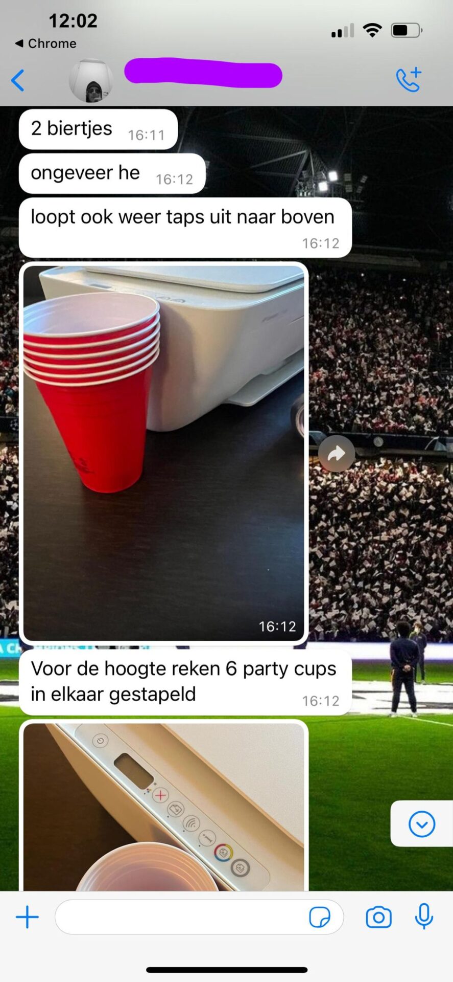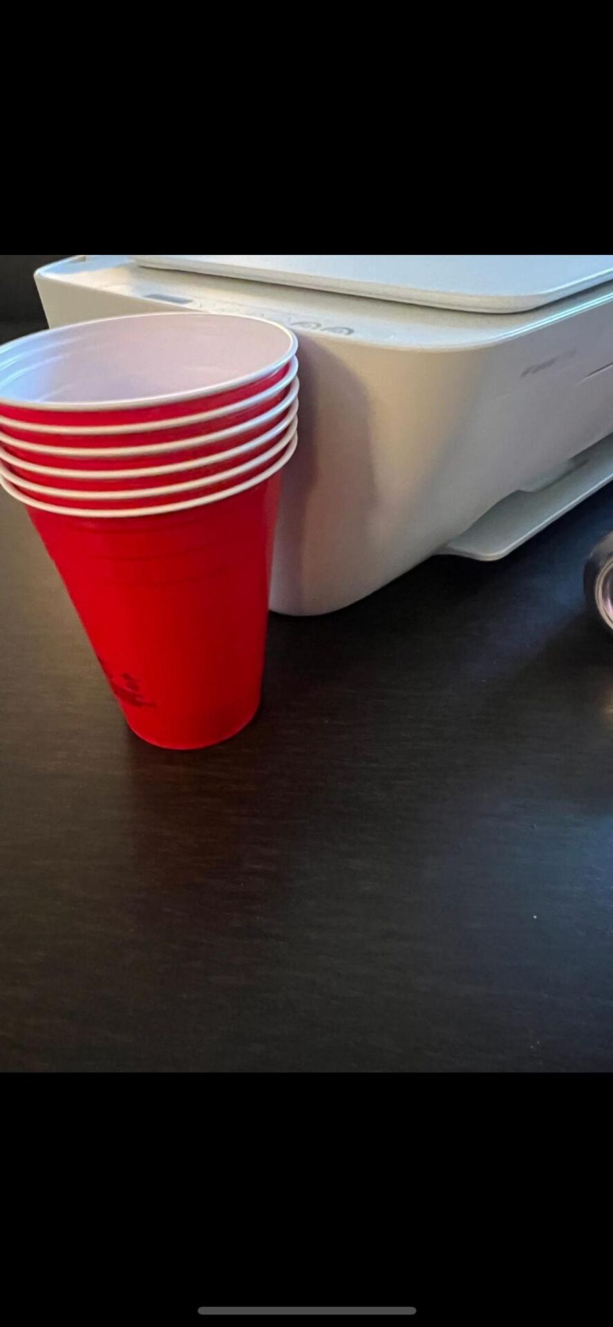 De verkoper van deze printer heeft geen rolmaat dus moet hij iets anders bedenken om de afmetingen door te sturen