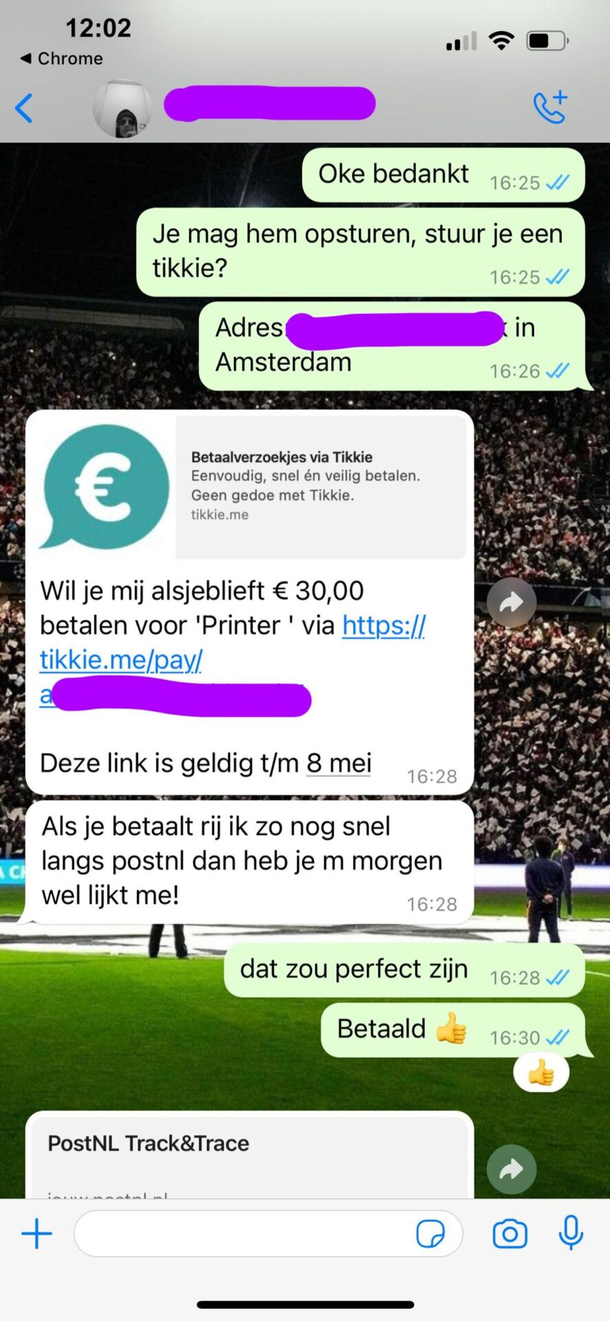 De verkoper van deze printer heeft geen rolmaat dus moet hij iets anders bedenken om de afmetingen door te sturen