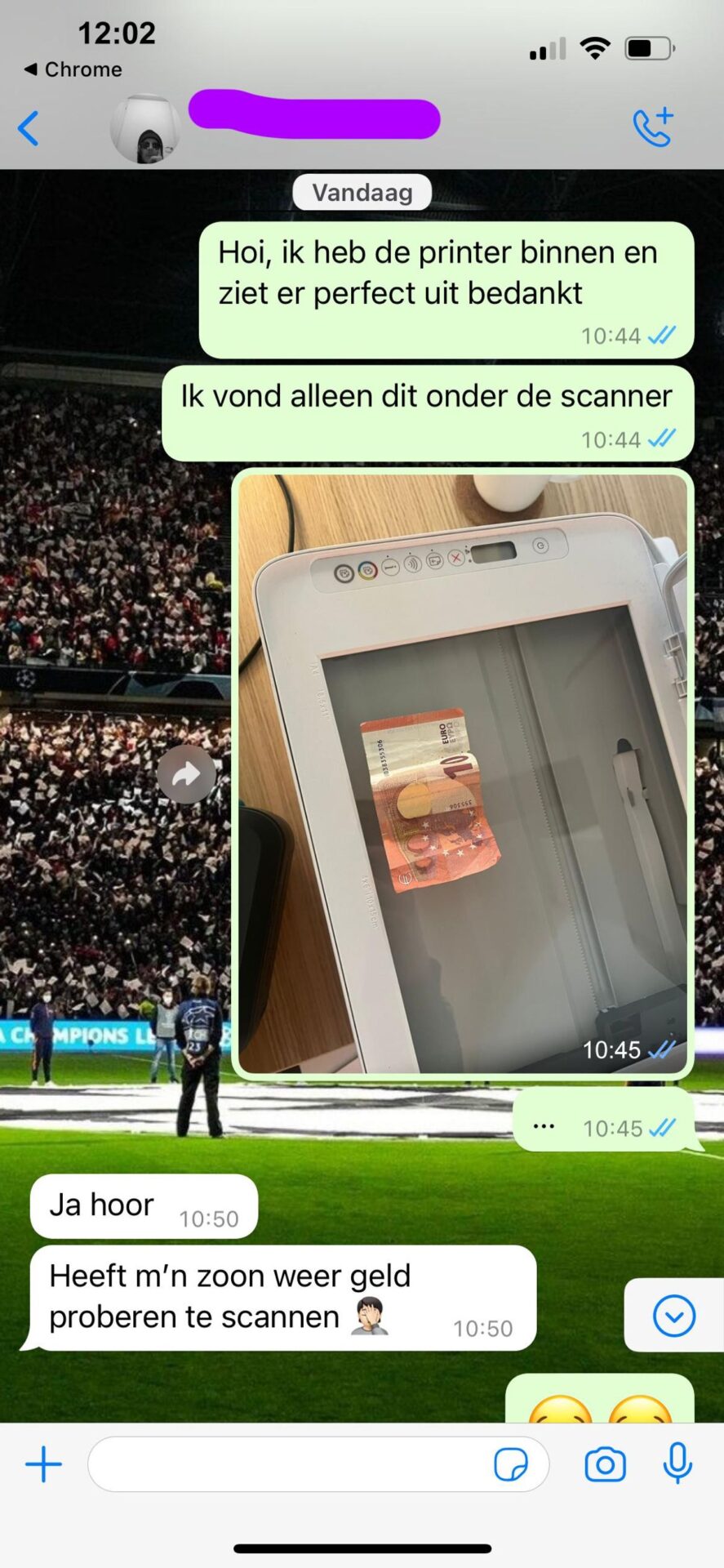 De verkoper van deze printer heeft geen rolmaat dus moet hij iets anders bedenken om de afmetingen door te sturen