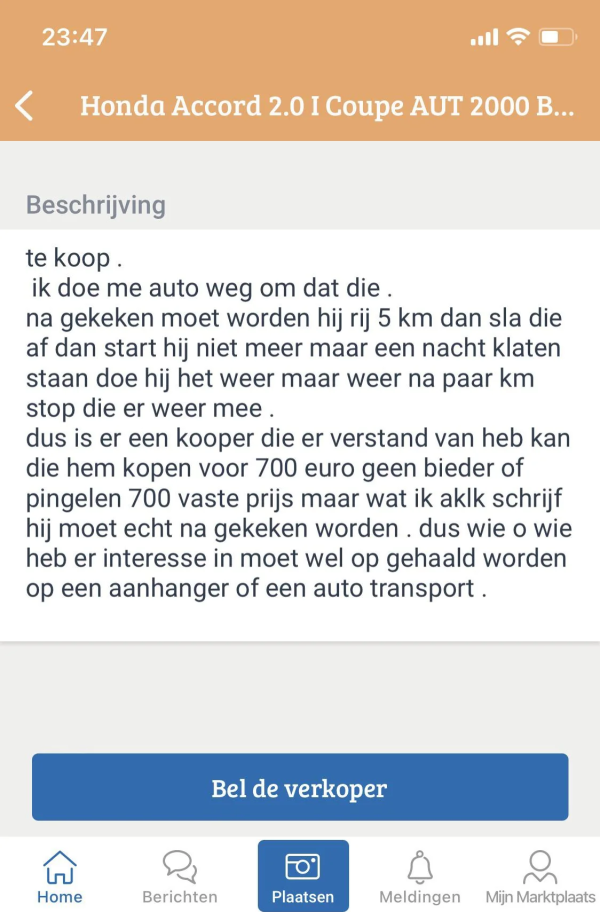 Niet iedereen neemt de tijd om een advertentie goed door te lezen. Daardoor ontstaan vragen waarvan de antwoorden al duidelijk vermeld staan.