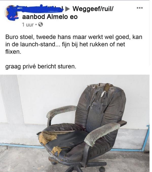 Er is ook een advertentie van een vrouw die een set van drie “high-end” stoelen verkoopt. De stoelen zien eruit alsof ze rechtstreeks uit een kringloopwinkel komen, maar de vrouw beweert dat ze “als nieuw” zijn. Ze voegt zelfs de opmerking toe: “Ze kunnen gemakkelijk van kleur veranderen, je hoeft ze alleen maar een beetje af te nemen.” Bedoelt ze dat je het vuil moet afvegen om ze in gebruik te nemen?