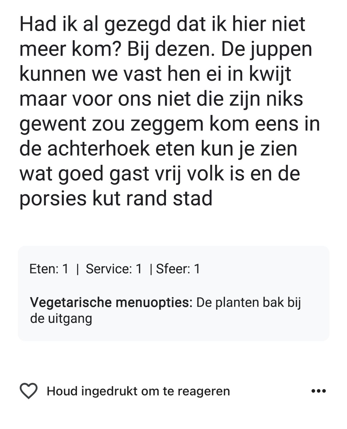 Deze Achterhoeker is helemaal niet blij dat hij Engels moet praten in een restaurant in Amsterdam en laat zijn frustratie blijken in een review