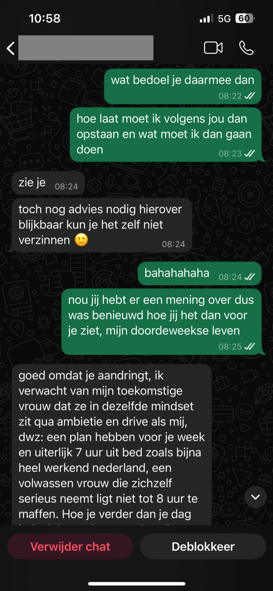 Deze Andrew Tate wannabe vindt dat vrouwen die doordeweeks na 07:00 uit bed komen geen ‘ambitie’ hebben en zichzelf niet serieus nemen