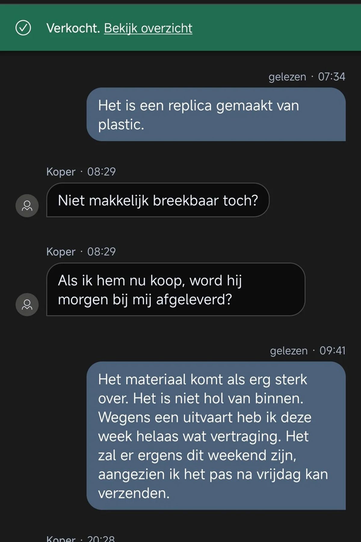De verkoper reageerde redelijk snel, maar blijkbaar had de koper niet het geduld om op een antwoord te wachten.