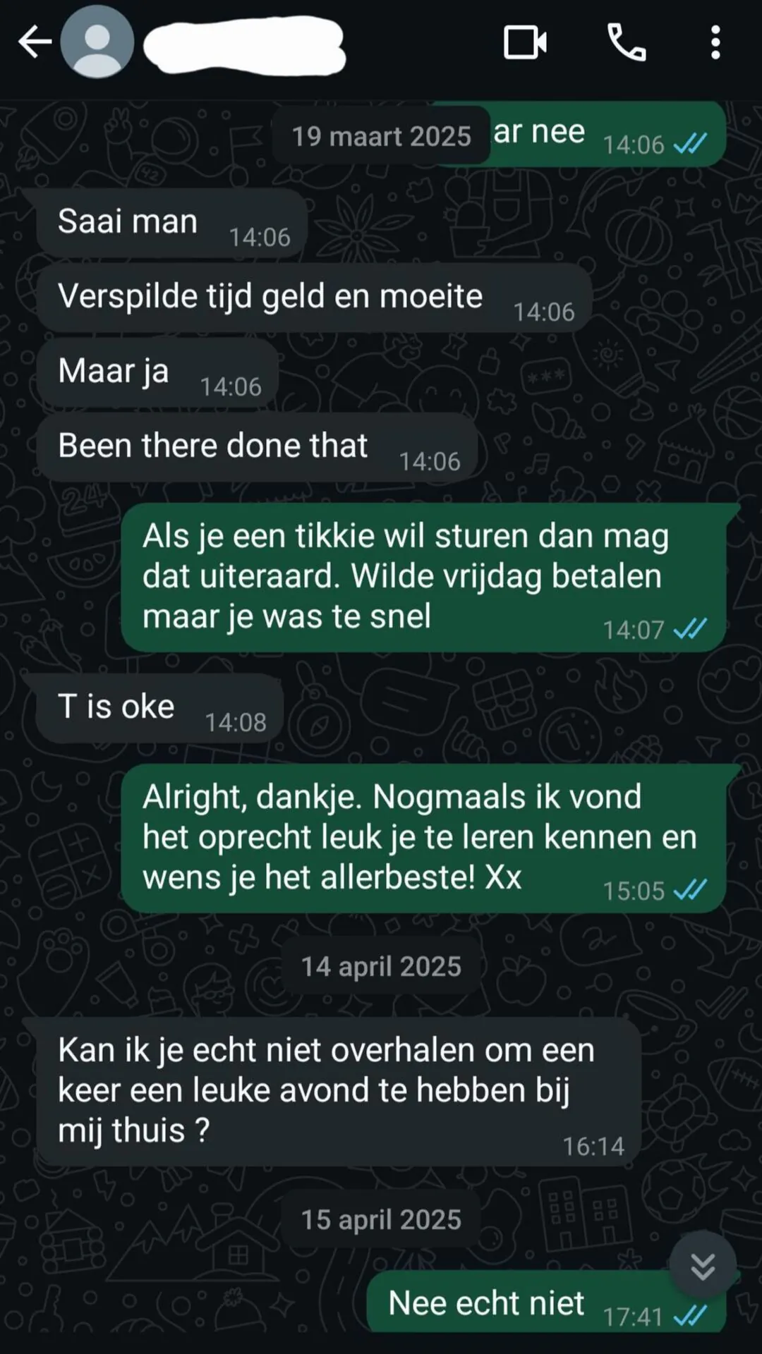 Deze gast wordt opdringerig omdat zijn date niet binnen 13 minuten reageert op WhatsApp