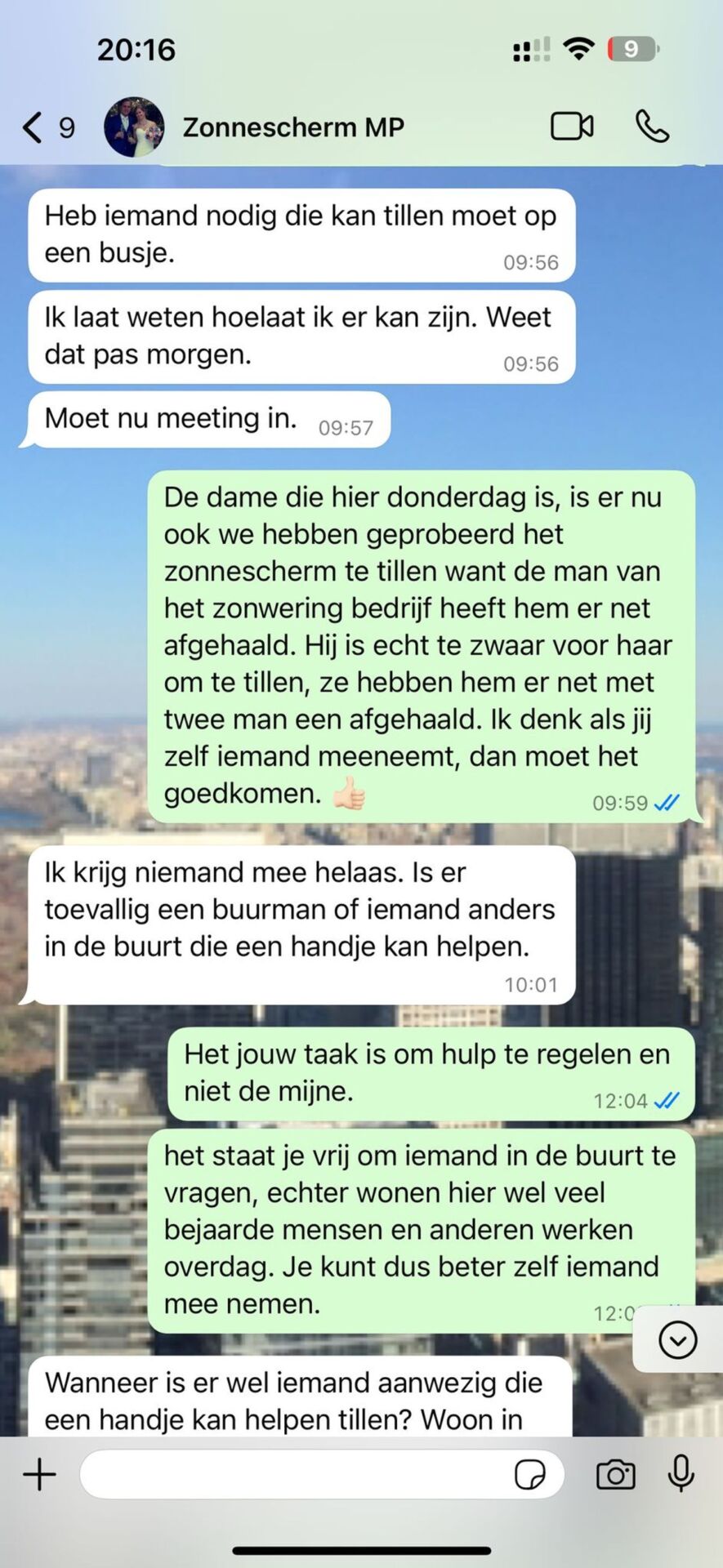 Toen de verkoper hem vroeg of hij het zonnescherm zelf kon ophalen, was David er meteen van overtuigd dat dit geen probleem zou zijn. Hij stuurde een bericht terug: “Zeker, ik ben een drukbezet man, maar ik regel wel even iets.” Wat hij niet had ingecalculeerd, was dat het zonnescherm nogal groot en zwaar was.