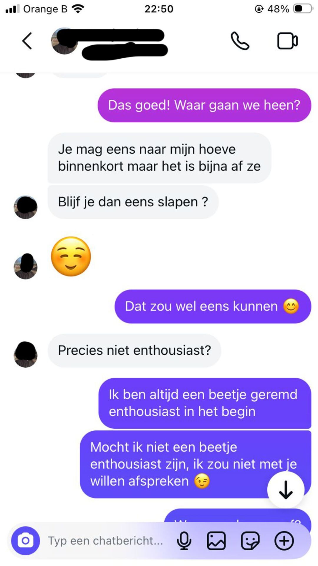 Het gesprek ontwikkelde zich snel van standaard smalltalk naar iets dat niet iedereen zou verwachten. De vrouw begon te praten over haar hobby’s op een manier die nogal… direct was. Het gesprek leek steeds minder over kennismaking te gaan en meer over ongewone interesses.