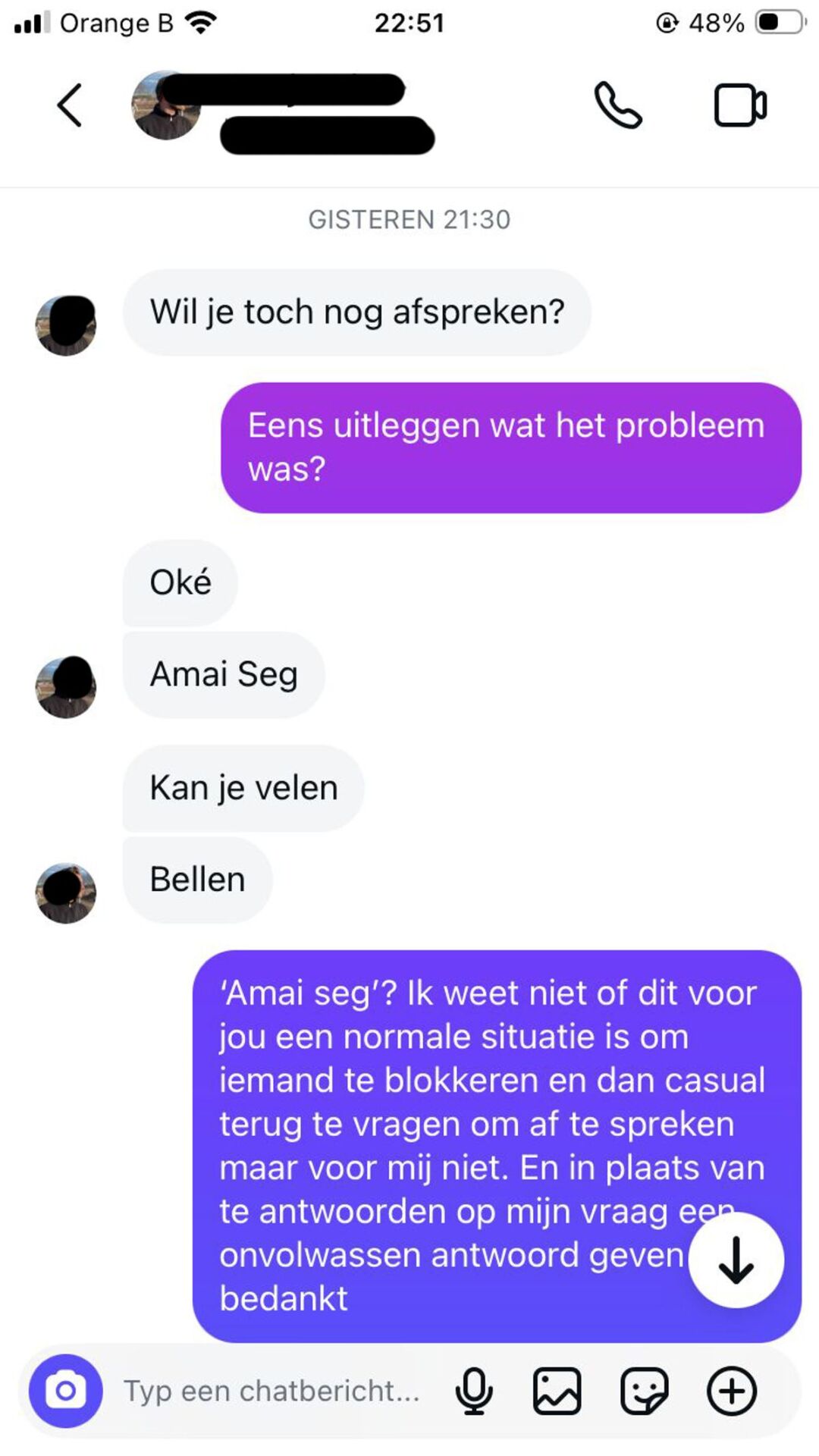 Op een gegeven moment leek de vrouw het gesprek in een bijna absurdere richting te sturen. De man, die inmiddels doorhad dat dit gesprek niet zomaar een willekeurige datingpraat was, besloot het gesprek met enige humor door te zetten.