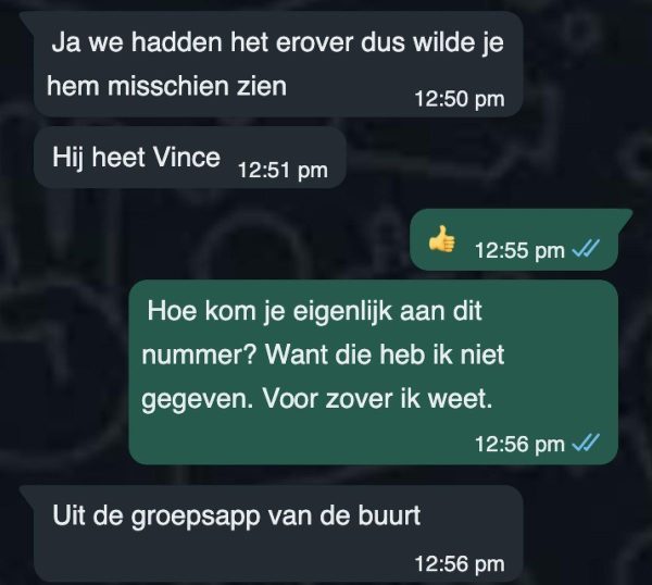 De dame keek verrast op en glimlachte ongemakkelijk. Dit was niet de manier waarop ze een gesprek had verwacht te beginnen, maar Duco leek er geen probleem mee te hebben om meteen zijn interesse te tonen.