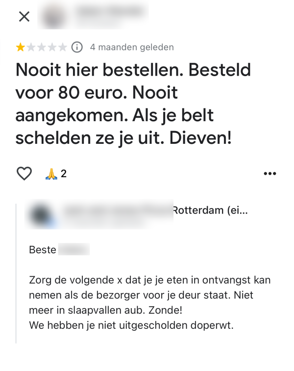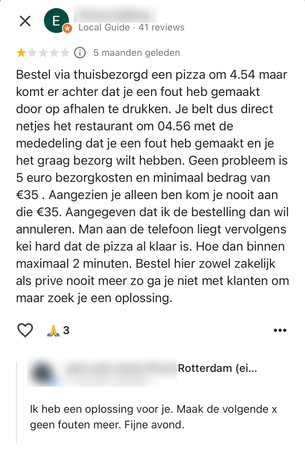 Eigenaar van Rotterdame pizzeria heeft nogal een bijzondere manier van reageren op negatieve Google Reviews