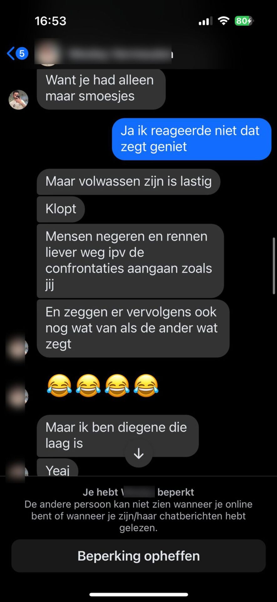 Uiteindelijk werd het helemaal stil van zijn kant. Maar het was een frustrerende ervaring. De vrouw realiseerde zich dat ze vaker dergelijke situaties zou moeten kunnen herkennen. Het was een les over hoe belangrijk het is om je grenzen te stellen en duidelijk te communiceren.