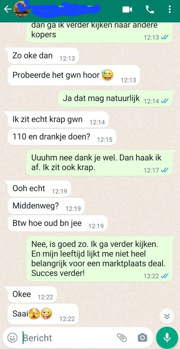 Gast is geïnteresseerd in tweedehands telefoon en wil daarvoor in natura betalen