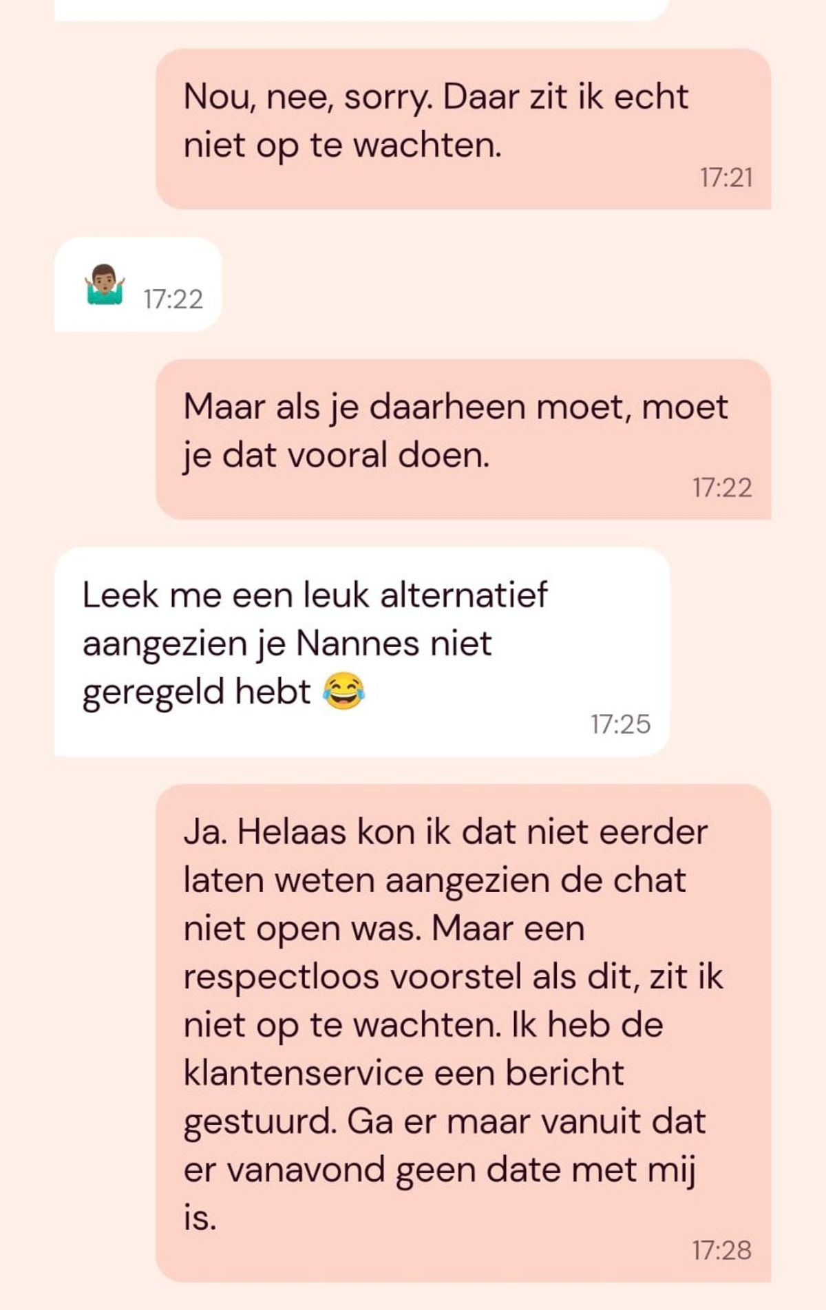 Met een halve glimlach stuurde hij snel een bericht naar de vrouw waarmee hij al weken contact had. “Sorry, ik moet onze date helaas afzeggen, ik heb iets onverwachts.”……