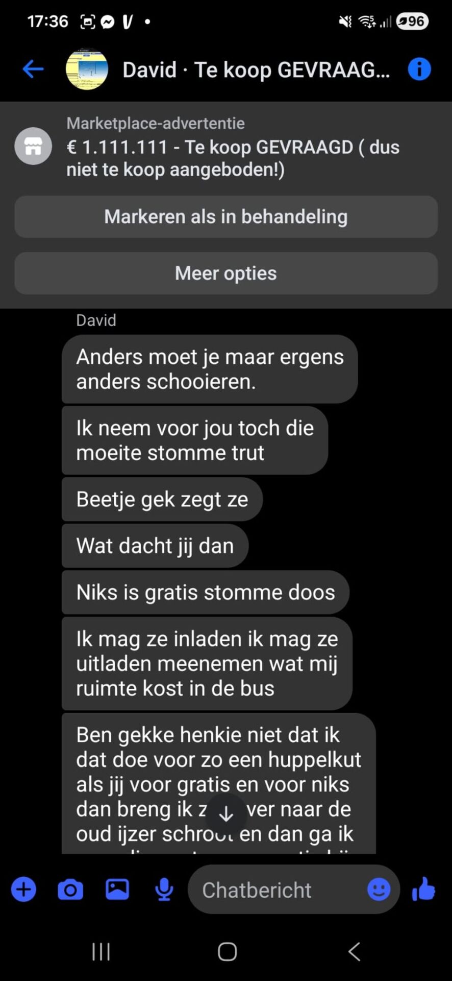 Gesprek met kledingverkoper loopt helemaal uit de hand als er wordt gevraagd waarom hij twee tientjes dieselkosten vraagt voor een ritje dat hij sowieso al moest maken!