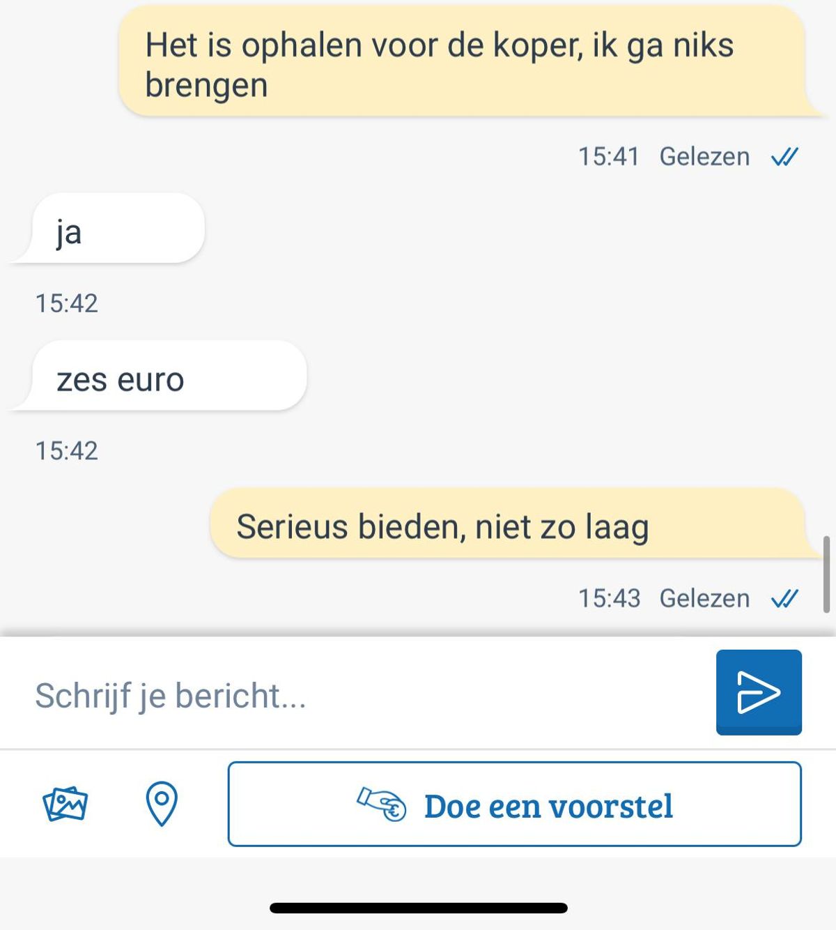 De koper probeerde zijn toon te milderen en legde uit dat hij simpelweg niet meer wilde betalen dan nodig was. Maar de verkoper werd steeds korter van stof en begon de situatie te escaleren.