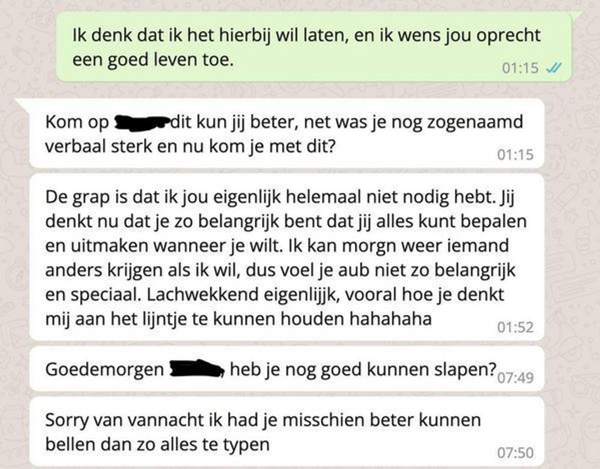 Haar reactie liet niet lang op zich wachten: “Ik bedoel het niet verkeerd, maar ik denk dat we gewoon niet de juiste match zijn voor elkaar.” Dit was een klap in het gezicht. Hoe kon ze zo snel tot die conclusie komen? Hij had net de sterren aan de hemel gezien, en zij leek zo makkelijk op te geven.