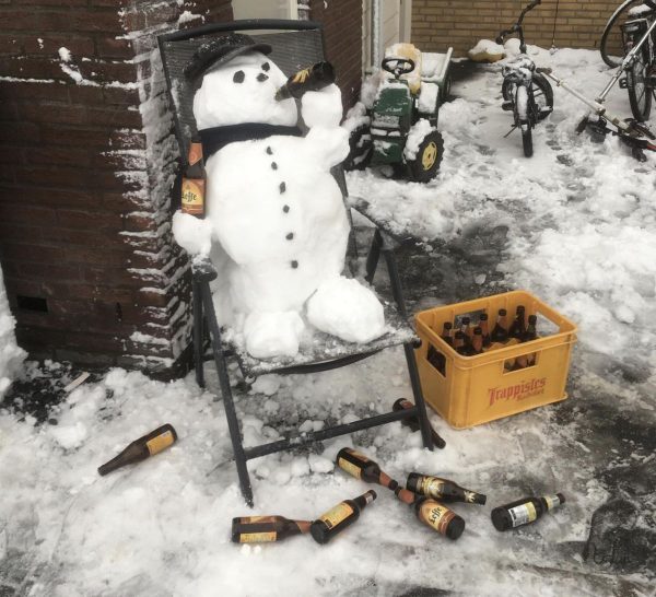 ongewone houding neerzetten. Maak bijvoorbeeld een sneeuwpop die