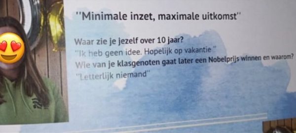 Hier 18 mensen die alleen via briefjes met elkaar kunnen communiceren