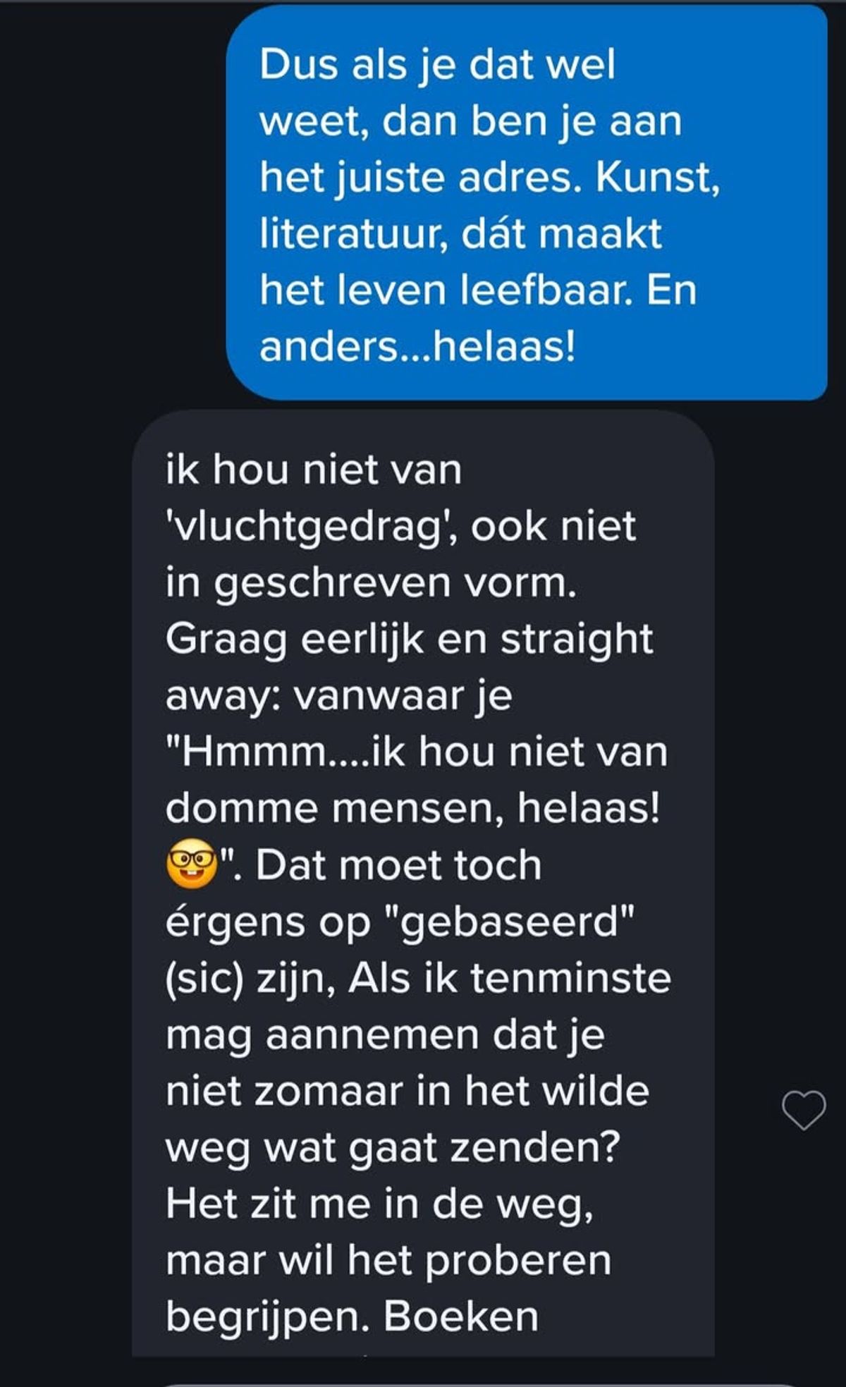 “Oh, het gaat niet echt om de hoeden. Het is meer het idee van het vinden van eenden met een beetje flair. Het maakt alles gewoon leuker,” antwoordde ze met een knipoog emoji. Je besloot maar te lachen, ook al had je geen idee hoe je hieruit moest komen. “Haha, ja, klinkt als een avontuur.”