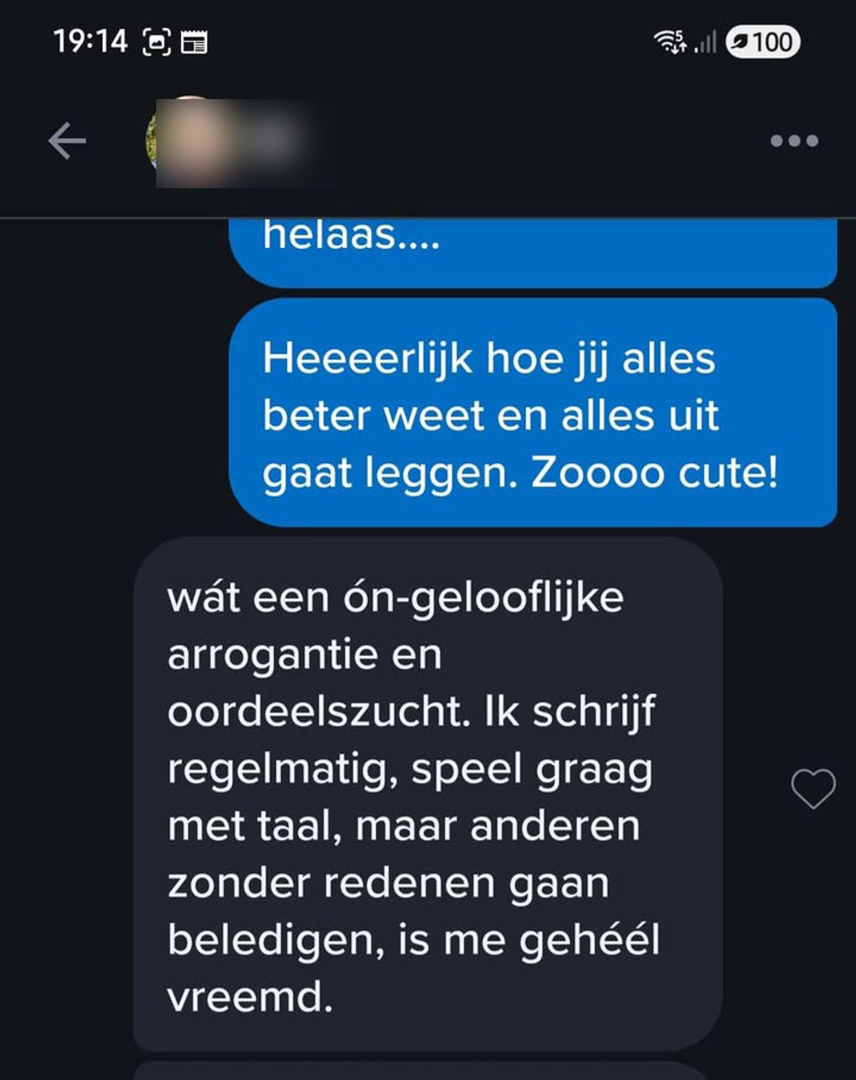Naarmate het gesprek verderging, voelde je de spanning toenemen. Het gesprek was zo ver verwijderd van de normaalste gesprekken die je ooit had gehad, dat je begon te twijfelen of dit echt de moeite waard was. Misschien had je Tinder gewoon niet helemaal begrepen. “Wat vind je dan echt belangrijk in een relatie?” vroeg je, hopend dat dit het gesprek weer normaal zou maken.