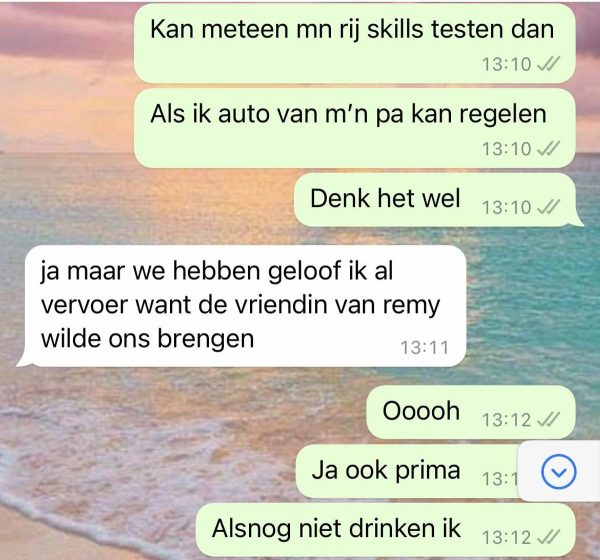 De keuze van het meisje om even een pauze te nemen van alcohol kan voortkomen uit gezondheidsredenen, een verandering in levensstijl, of simpelweg de wens om een tijdje zonder alcohol te leven. Het was een moment voor haar om haar grenzen te stellen, maar voor de jongen was dit een niet-onderhandelbare kwestie, wat kan wijzen op een grotere discrepantie in waarden tussen de twee. …….