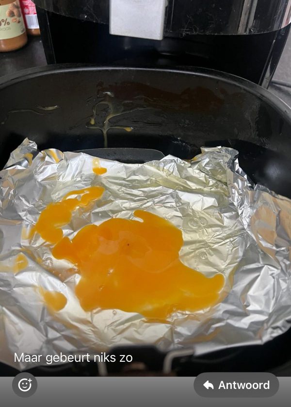 De jongen besloot, vol enthousiasme, een ei in de airfryer te leggen zonder een geschikte bakvorm te gebruiken. Hij dacht dat het ei wel in de mand van de airfryer zou passen, maar al snel ontdekte hij dat een ei in de open lucht van de airfryer niet zo goed werkt als in een traditionele pan. Het ei kwam niet helemaal goed uit de verf, en wat begon als een avontuur in de keuken, eindigde in een klein misverstand.