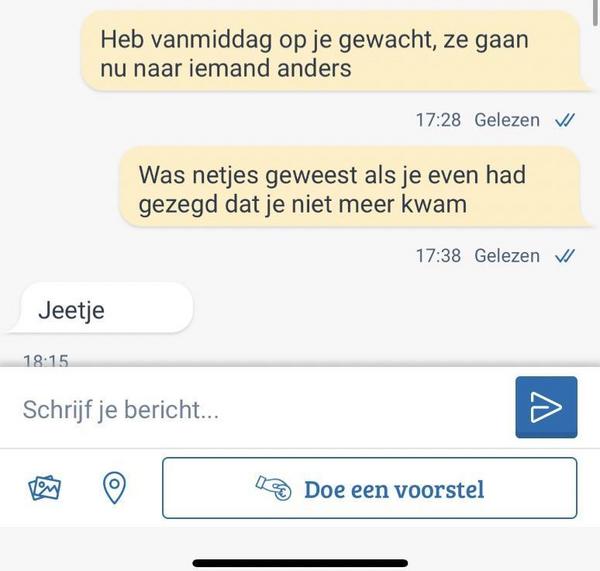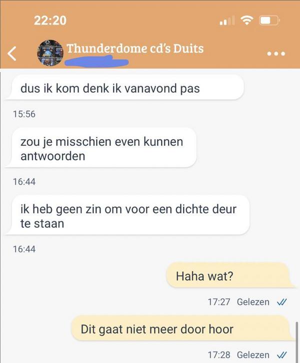 ooit met een vreemd excuus kwam. Marktplaats-gesprekken kunnen soms
