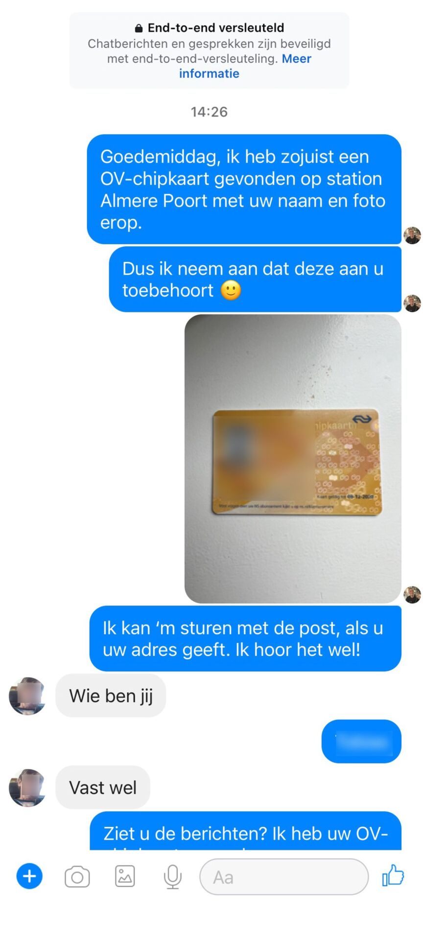 Zijn bericht was eenvoudig en rechttoe rechtaan: “Hoi, ik heb je OV-chipkaart gevonden op station Almere Poort. Laat me weten hoe ik ‘m naar je kan terugsturen!” Klinkt aardig, toch? Maar wat hij niet had verwacht, was de reactie die hij zou krijgen……