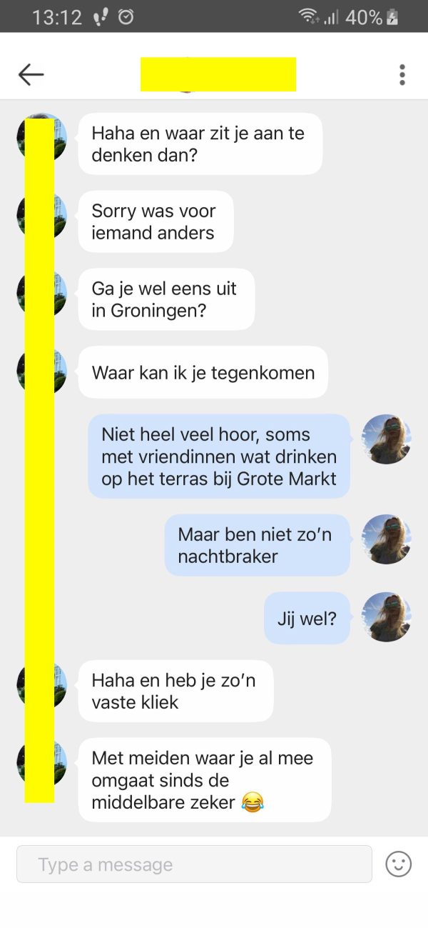 Kearl uit Groningen probeert een vlot gesprek te voeren op dating-app maar haakt al af bij de woorden ‘Thaise Curry’