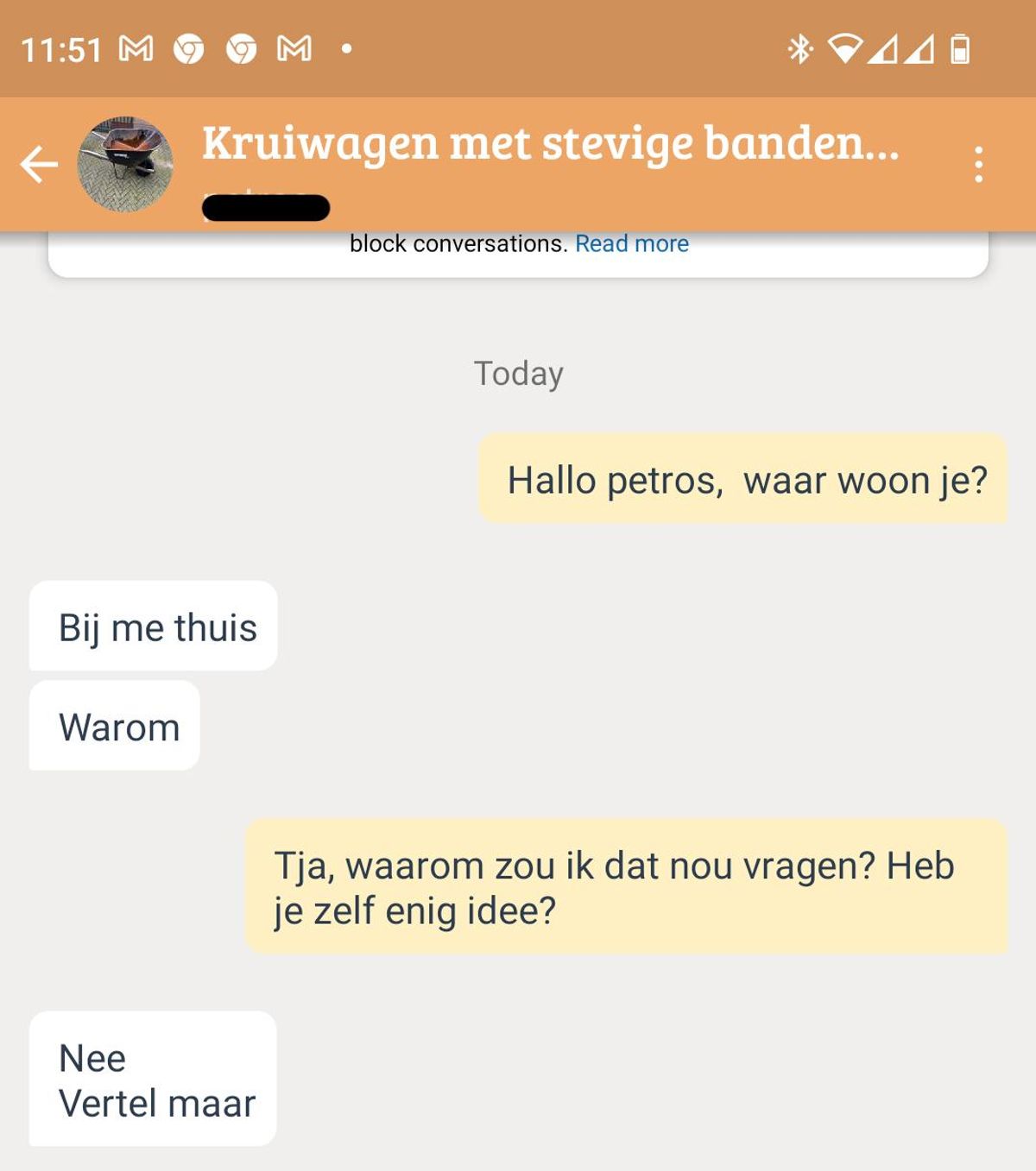 Kruiwagen op Marktplaats? Dit gesprek loopt helemaal uit de hand! “Kom je het stelen?”