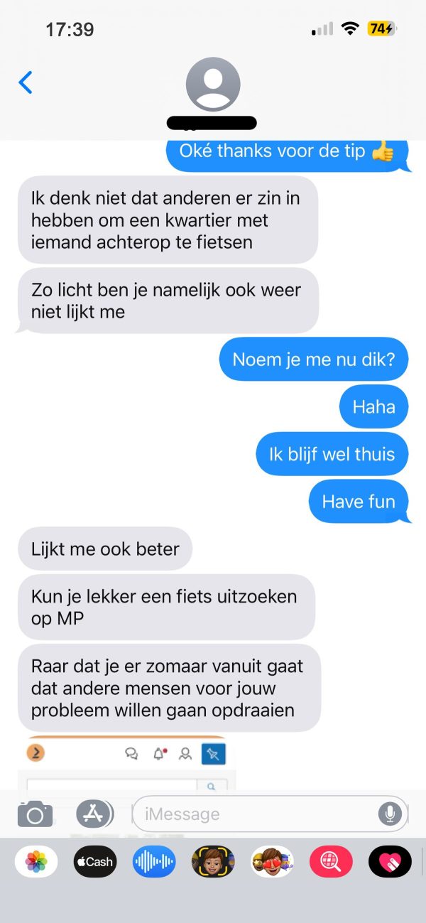 “Ik heb geen ruimte voor twee, en ik ben niet van plan om de hele weg achterop te fietsen,” antwoordt haar vriendin, haar geduld raakt langzaam op. De sfeer begint grimmiger te worden……